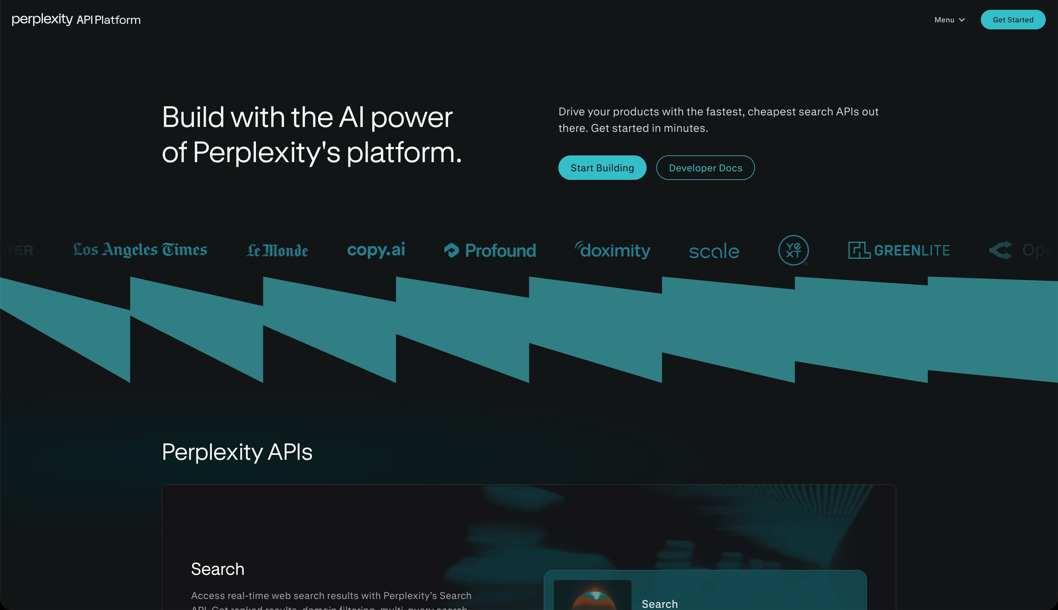 Similar to the monochromatic pink palette above, this example from AI platform Perplexity features several different shades of blue. The solid lighter blue combined with a gradient from light to dark in the background has a layering effect—the solid color feels like it’s on a completely different plane.