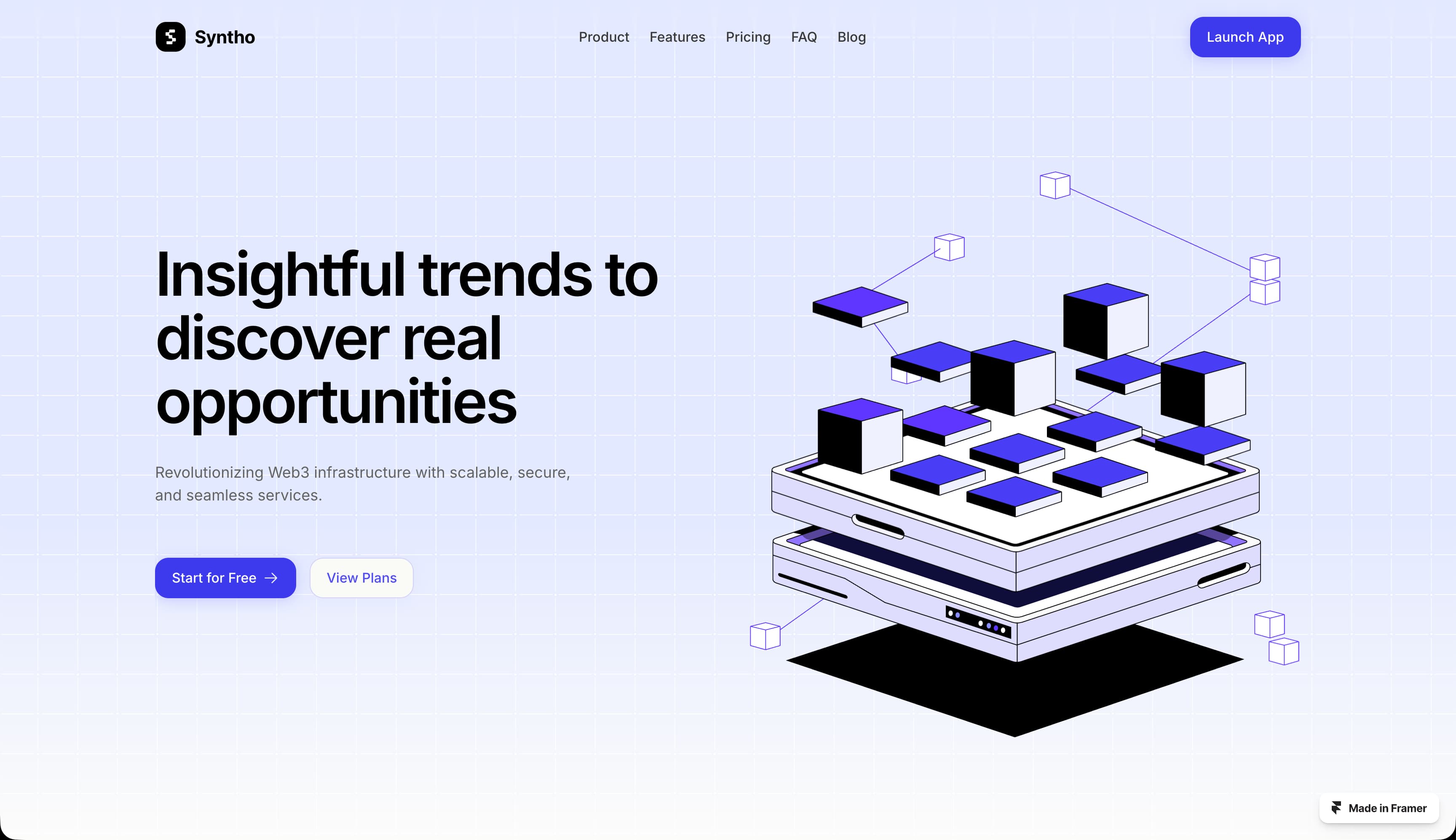Like a blueprint or complex web of equations worked out atop graph paper, the purple-blue palette in Framer’s Syntho template is both digitized and familiar. These highly pigmented colors feel like digital ink, mapping the way to a new and more interconnected world. Used here for diagrams and charts, the combo feels youthful, energetic, and bold.