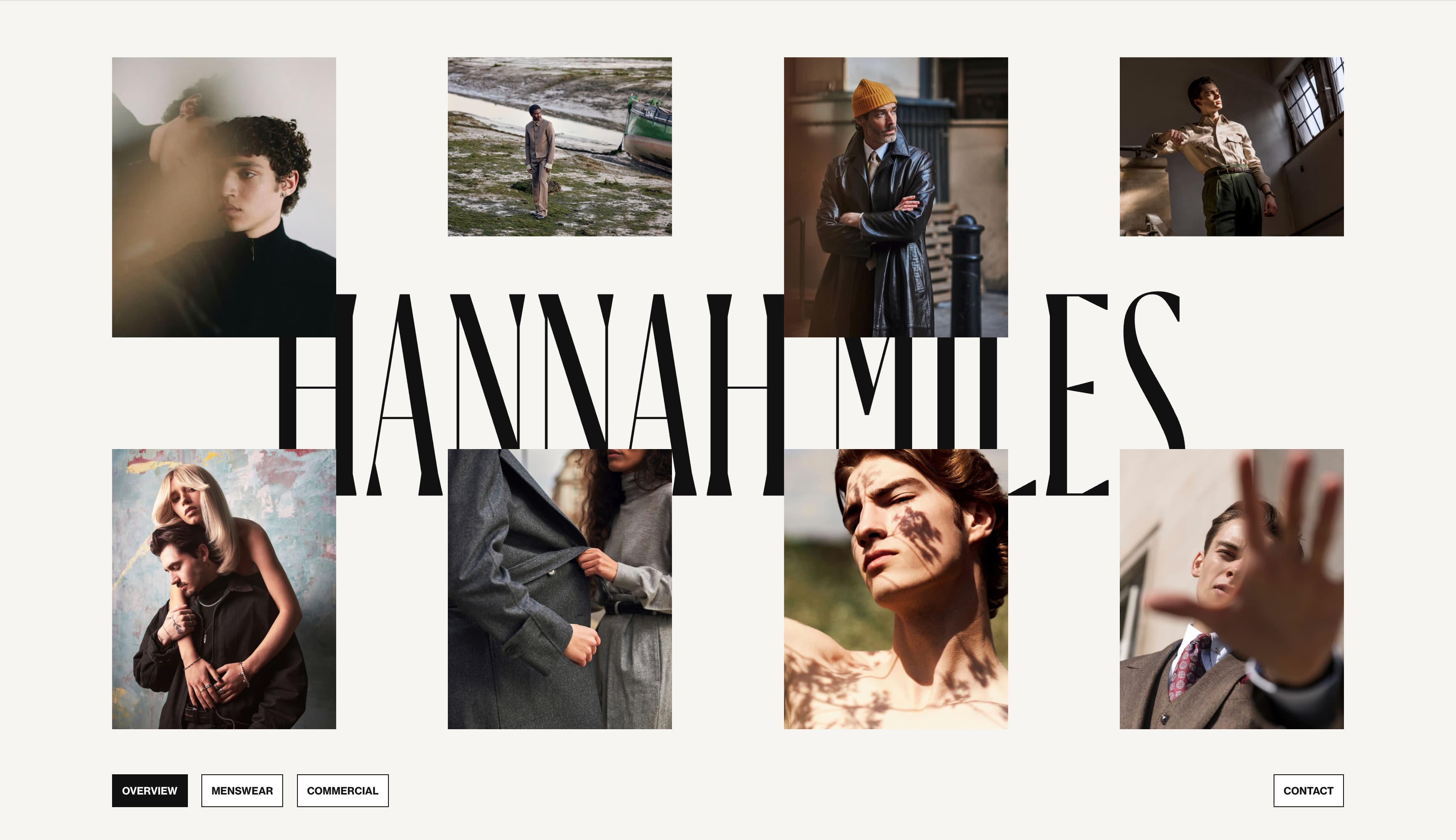 Hannah Miles is a London-based photographer with a portfolio of commercial and portrait work. Her neutral-toned site features ample white space, letting her work shine. Standout elements include: