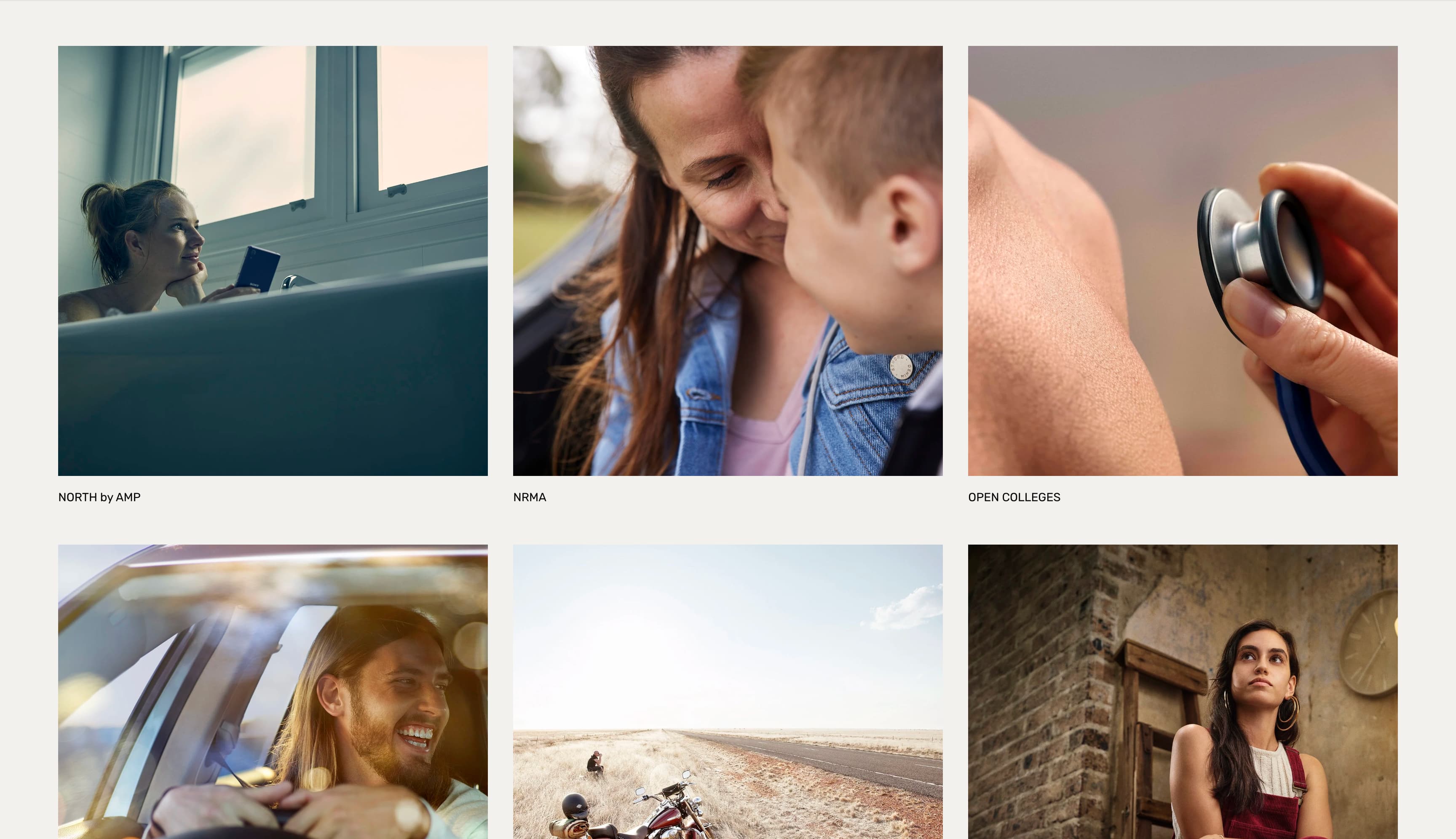 Christopher Ireland’s clean portfolio allows his technical expertise to shine. The simple menu contains only “Commercial,” “Creative,” and “Community” options. Each portfolio category features a simple grid, where visitors can then click through to project-specific landing pages.