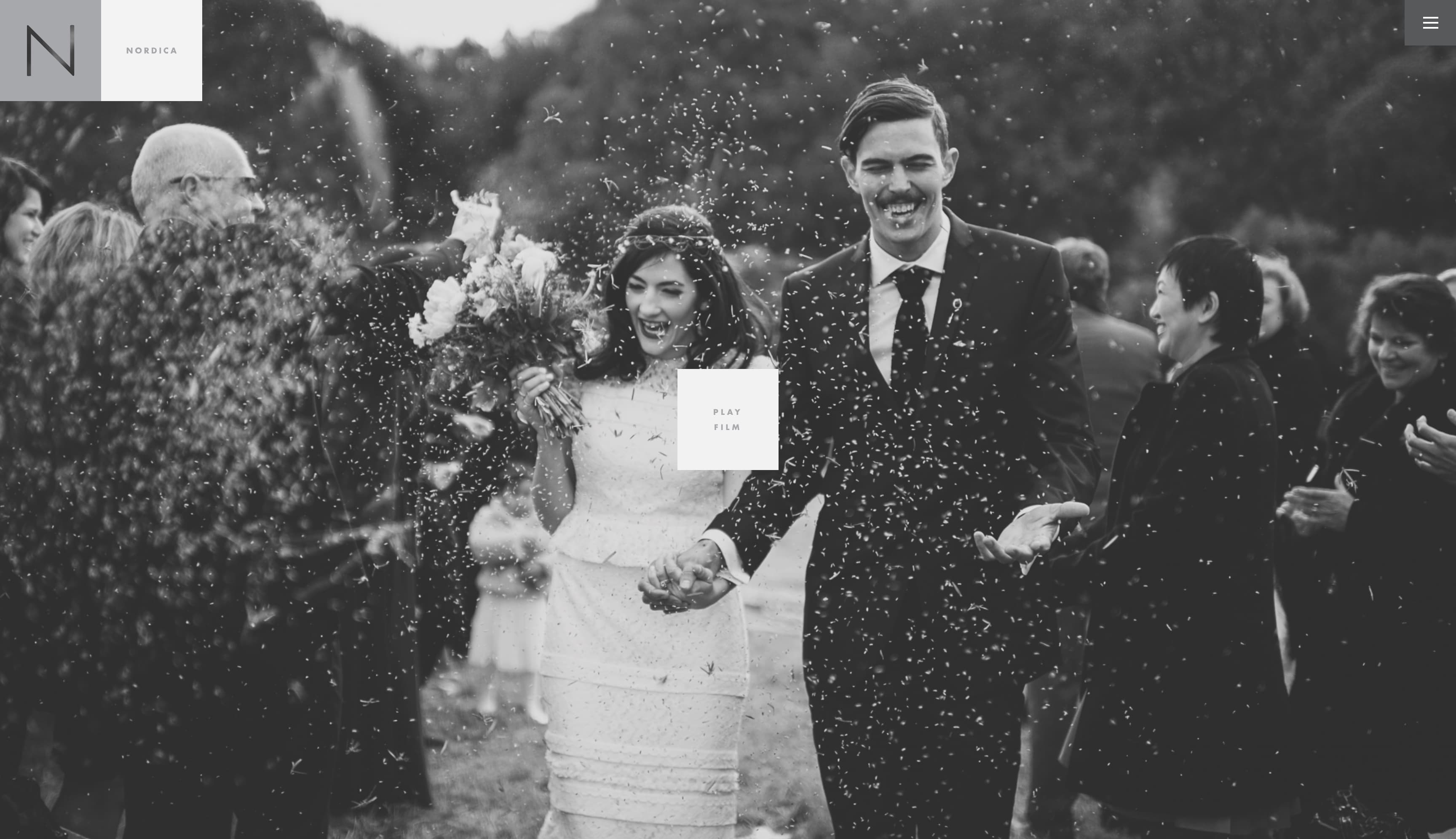 Nordica Photography is a Swedish duo that specializes in wedding photography. Their site shows that not all photography portfolios need to lead with still image presentations. Their homepage features a hero film that combines a montage of photos with heartfelt narration.