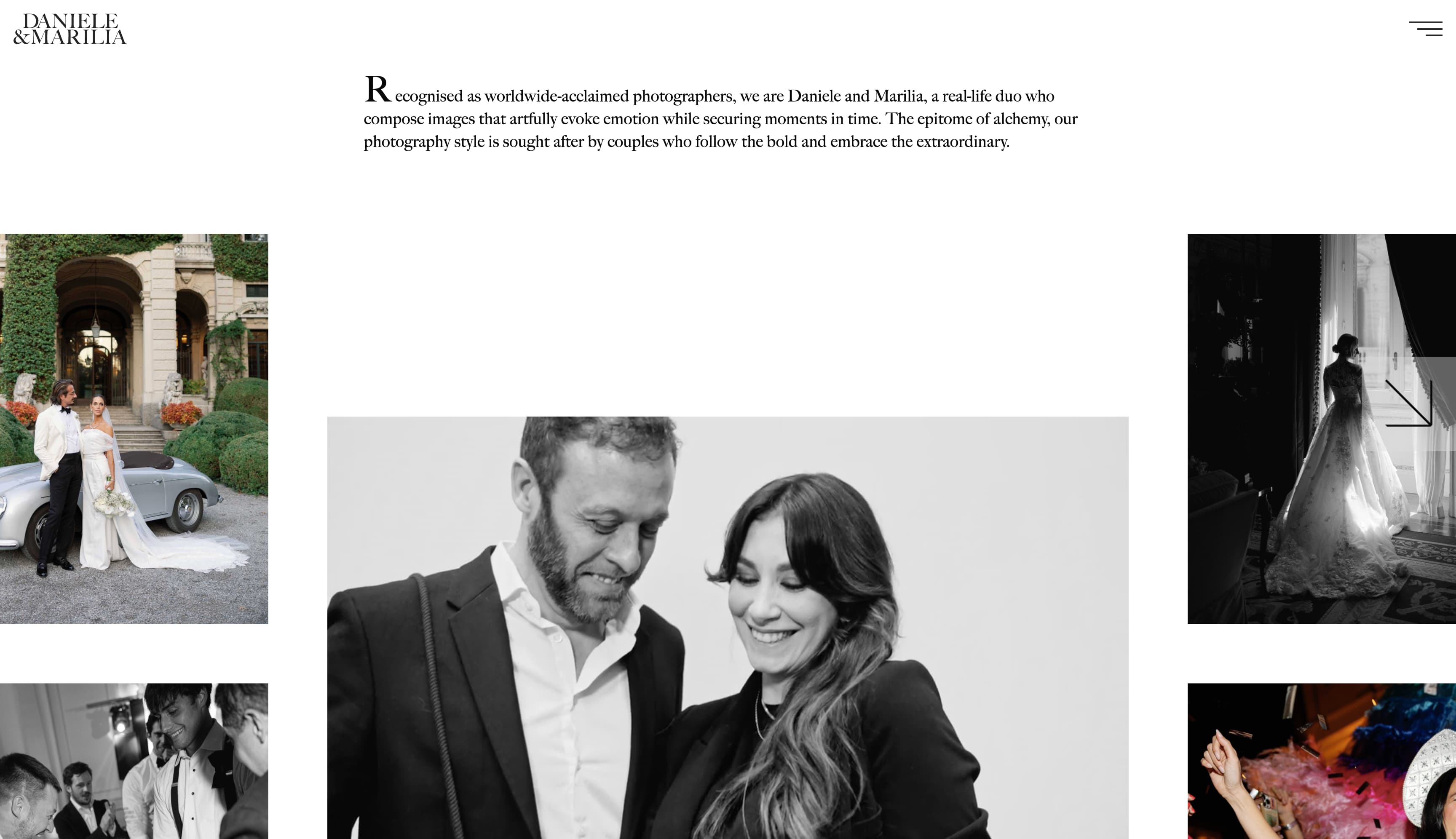 Daniele&Marilia are Italian wedding photographers with an editorial flair. Their portfolio aims to build trust with website visitors with: