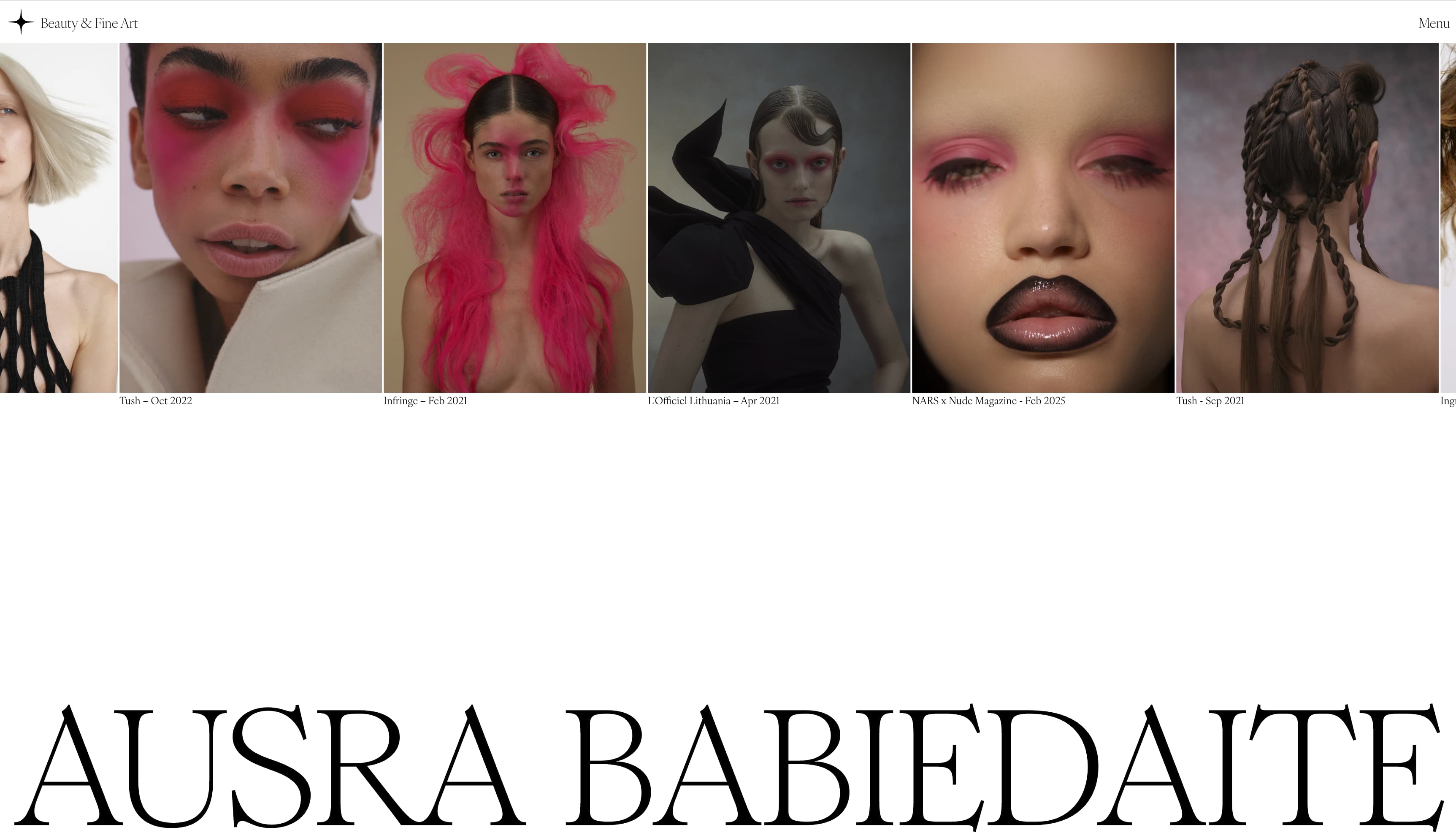 Copenhagen-based Ausra Babiedaite’s portfolio employs an unexpected scroll experience to hold the viewer’s attention. Whereas most portfolios cascade down the page, Babiedaite’s site eschews vertical motion in favor of horizontal. Scrolling moves the carousel of images at the top from right to left, while her name remains anchored in place below. If you click an image in the carousel, it enlarges and opens a project page, which is vertically scrollable.